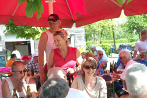 Nach dem Einsetzen im Altarm ging es bei herrlichem Wetter an Mauthausen vorbei bis zur Übertragestelle in den Altarm von Wallsee (vor dem Kraftwerk Wallsee). Die letzten 3 km führten uns durch den schönen Altarm bis zum Ruderverein Wallsee. Auf dem Vereinsgelände mit dem herrlichen Ausblick auf den Altarm feierten die 173 Teilnehmer die gelungene Sternfahrt.
